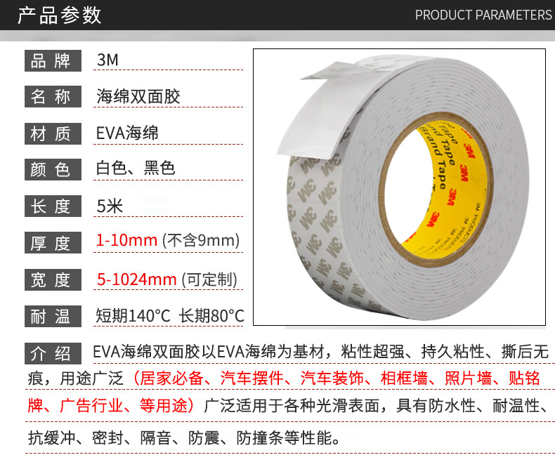 介紹EVA海綿雙面膠以EVA海綿為基材,粘性超強(qiáng)、持久粘性、撕后無